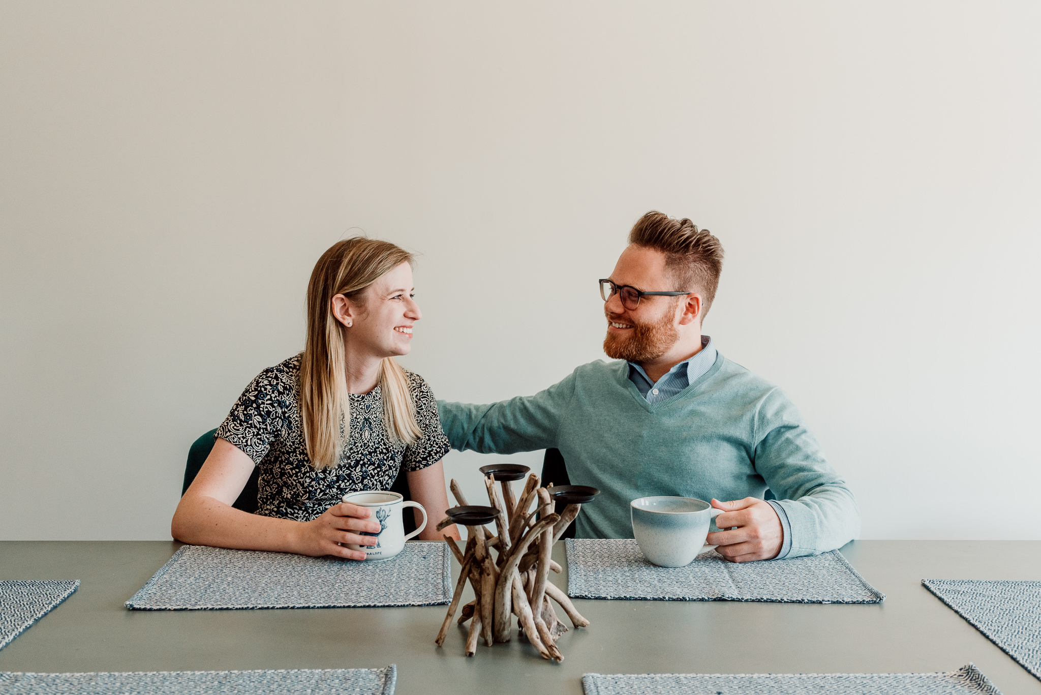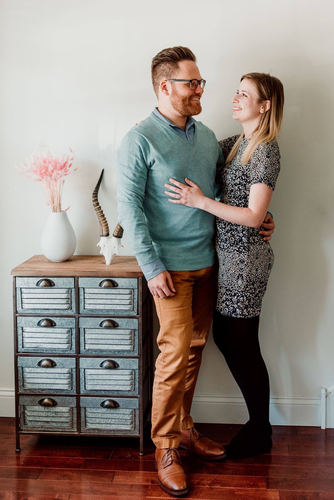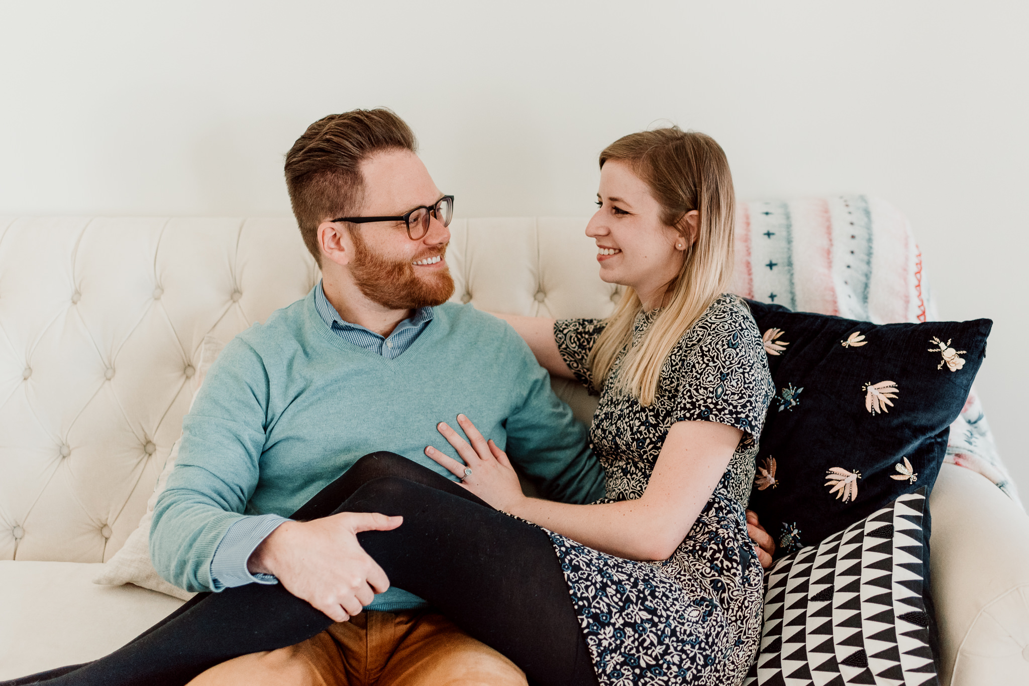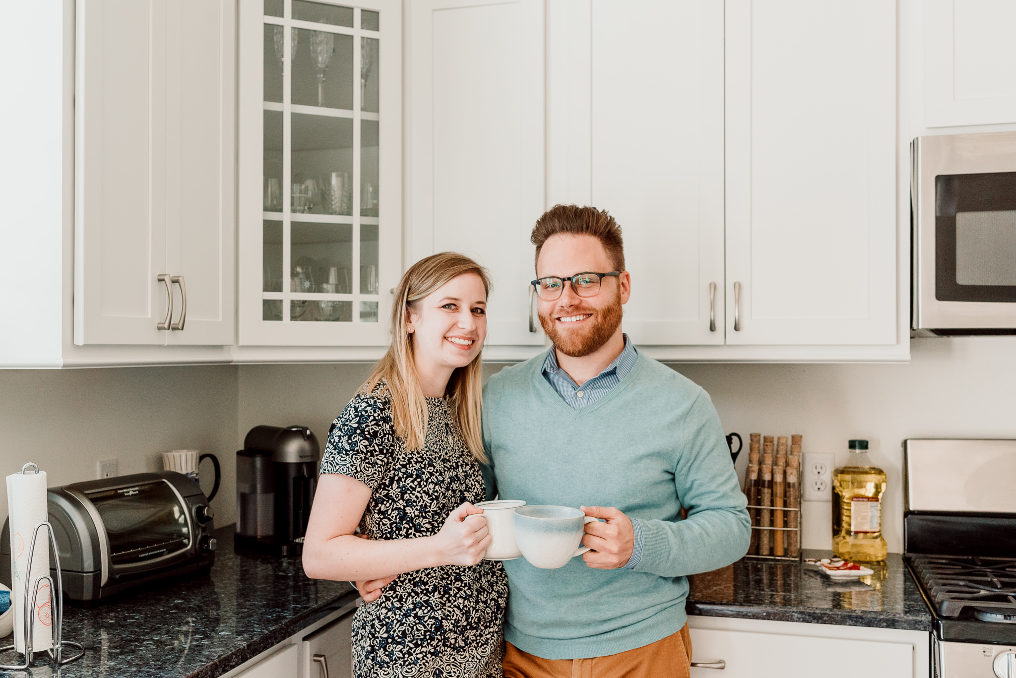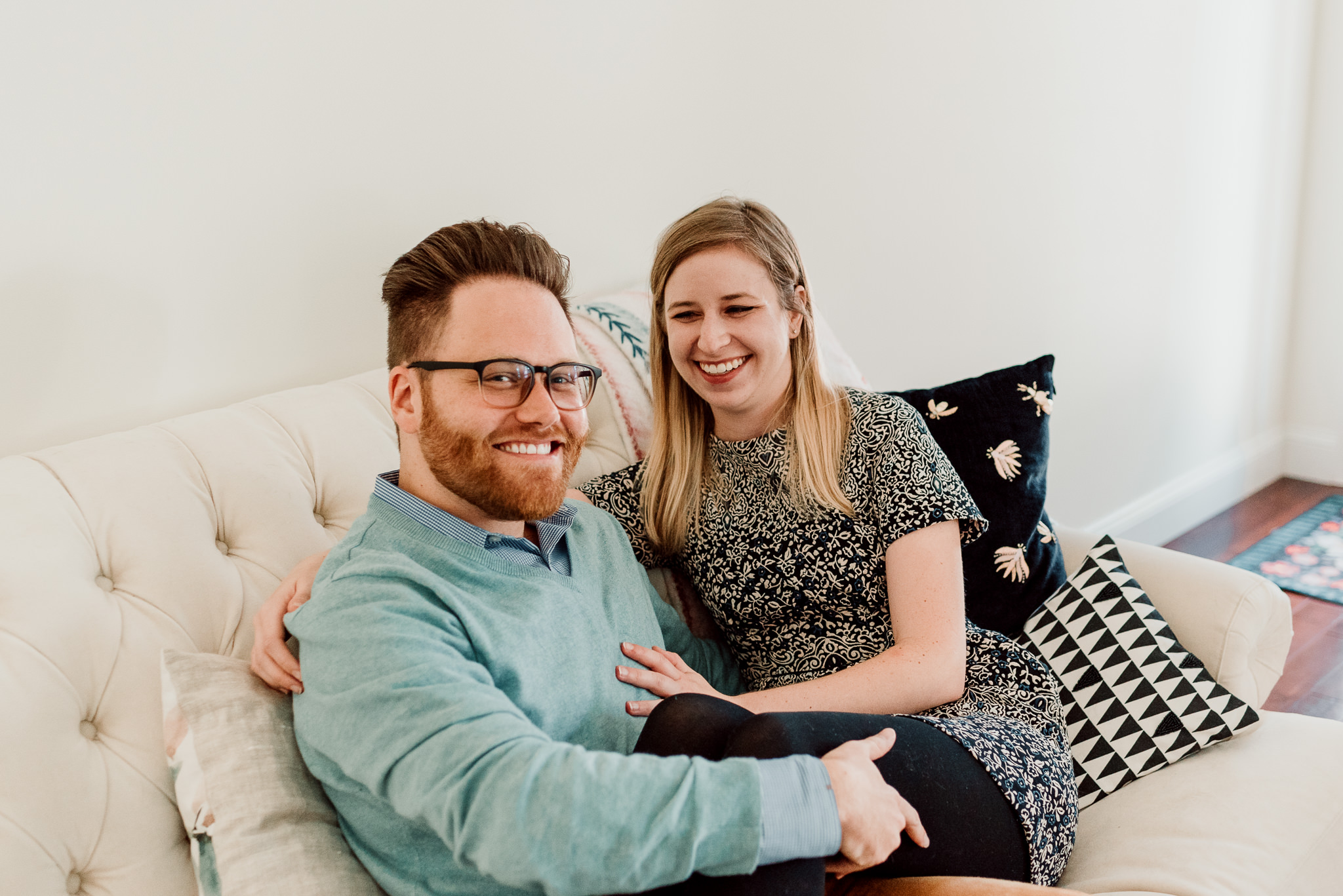 This sesh was absolutely perfect. Dana + Joel met through mutual work and office stuff, got to chatting one day, and eventually hit it off. They’re both pretty chill and big time foodies, and spending their energies on traveling the world and experiencing life is always their top priority. For goodness sake, Joel proposed in Barcelona so you just *know* they’re cool kids. As a self-professed fur family, all the pieces come together just right to hang together in their home and simply capture who they are right now, favorite coffee mugs in hand and all. And spending this afternoon together was so much fun! Take a hot second and peek around that beautifully decorated home, it’s so clean and minimalist, and just stunning in it’s welcoming calmness (just like Dana + Joel, to be honest).