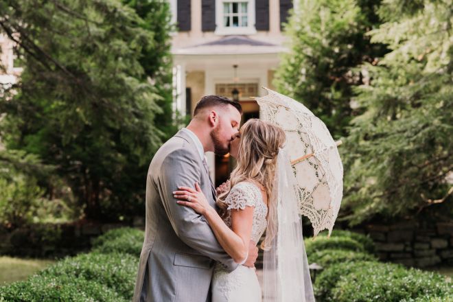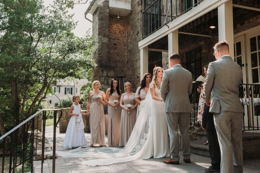 When Jenny and her girls were all done with getting themselves ready for the day, I brought her out to meet Dan for a little one-on-one time before the ceremony. Talk about a dreamy first look! Then we met back up for their sweet marriage ceremony in the sunshine, surrounded by cherished photos of family and so many wonderful memories, while just their closest family and friends watched. The estate house was the most perfect backdrop for their forever promises, and we had a blast finding all the great spots afterwards for some amazing portraits. The grounds at Holly Hedge are SO DREAMY, my friends. Take a peek at this gorgeous day with these gorgeous people. Seriously just one of the most beautiful days ever!