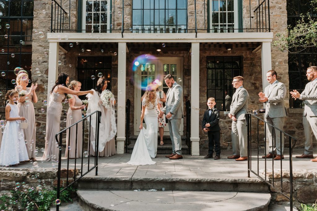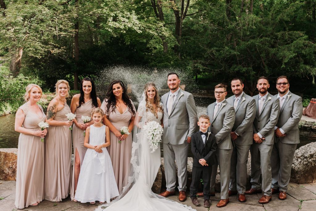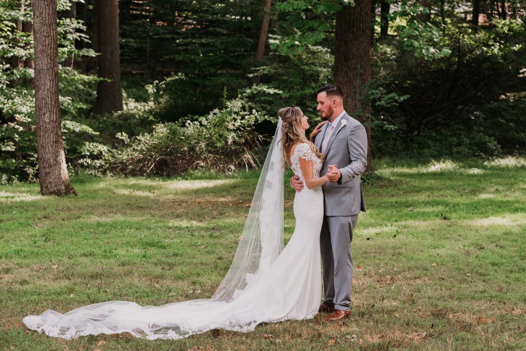 Now, let’s talk about this incredible day. Because let me tell you… WOWZA! Jenny is a knockout. I mean, a drop-dead gorgeous creature. Every little bit of her sweet nature shines through and turns every room she walks through into a beaming ray of sunshine! Add in some killer hair & makeup, and just… wow. She was an absolute goddess, and all smiles. Dan has that “tall dark and handsome” kinda look to him, and with his big, infectious smile, these two were a pair to see! Jenny’s gown fit like a glove in all the right places, and check out Dan’s custom jacket lining. E A G L E S !!! For the finishing touches, Jenny wore her cousin’s stunning veil, her mother’s precious earrings and necklace, and the gorgeous bracelet was a gift from Dan. So. Much. Love.
