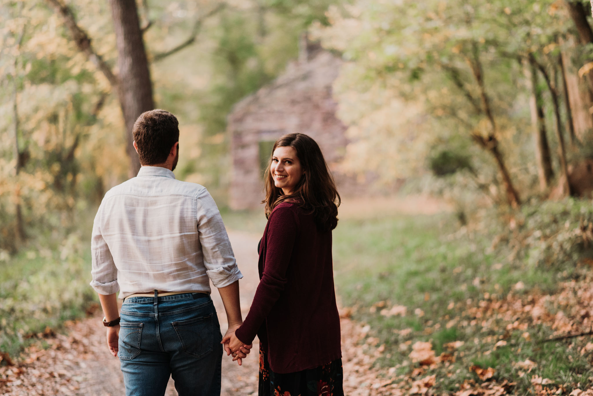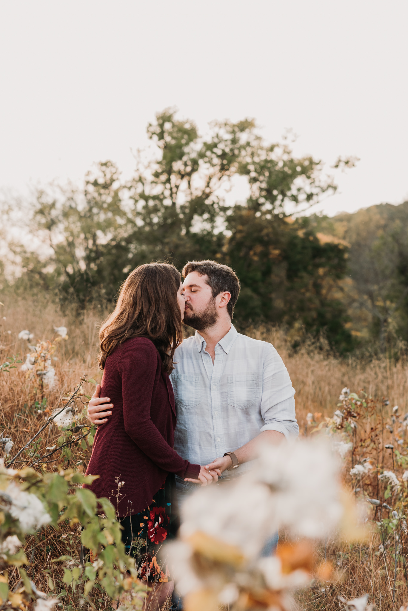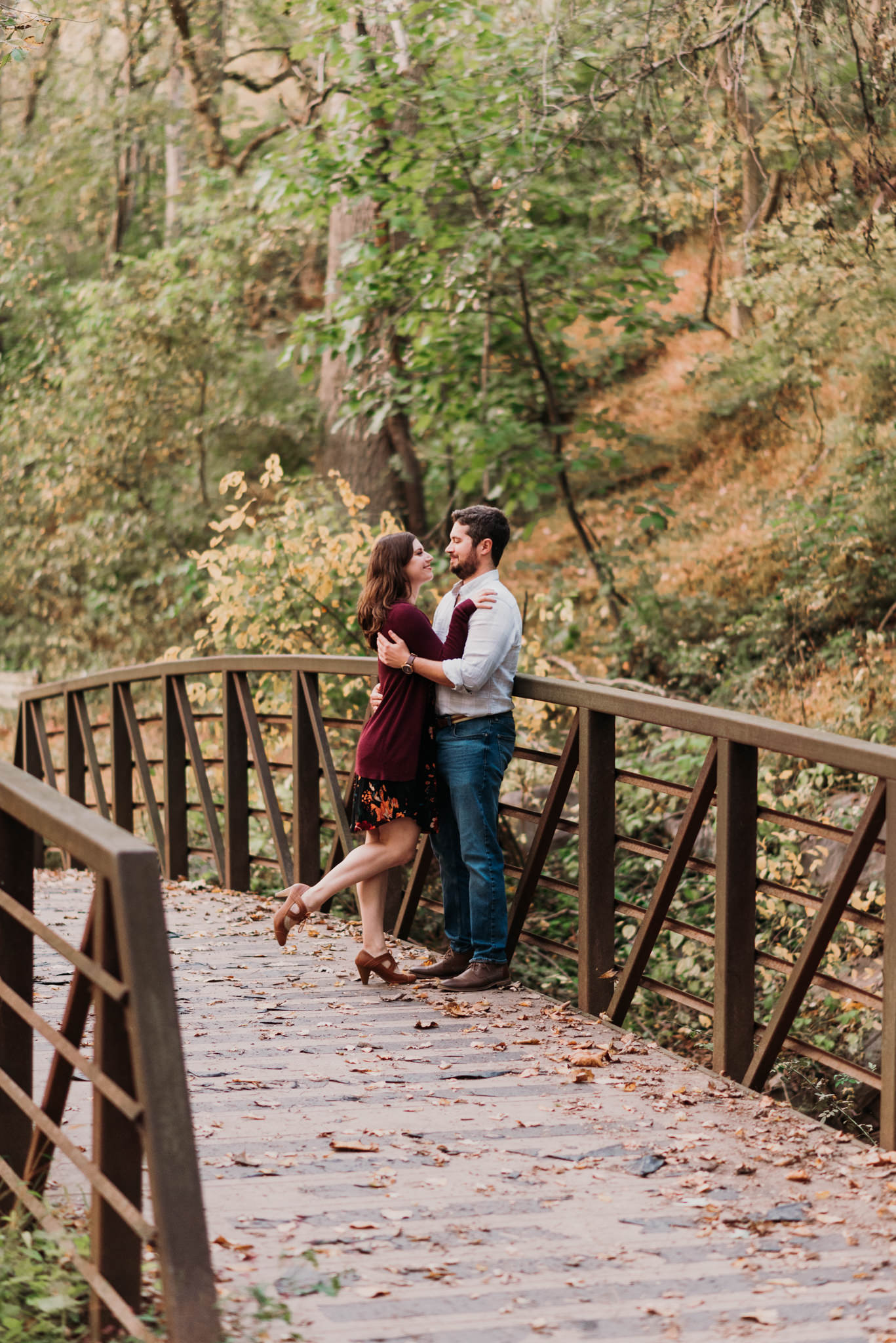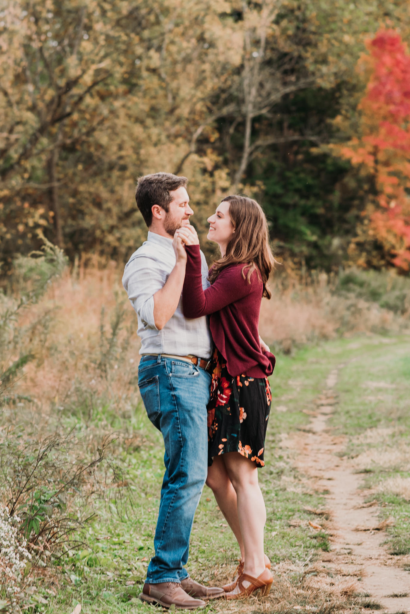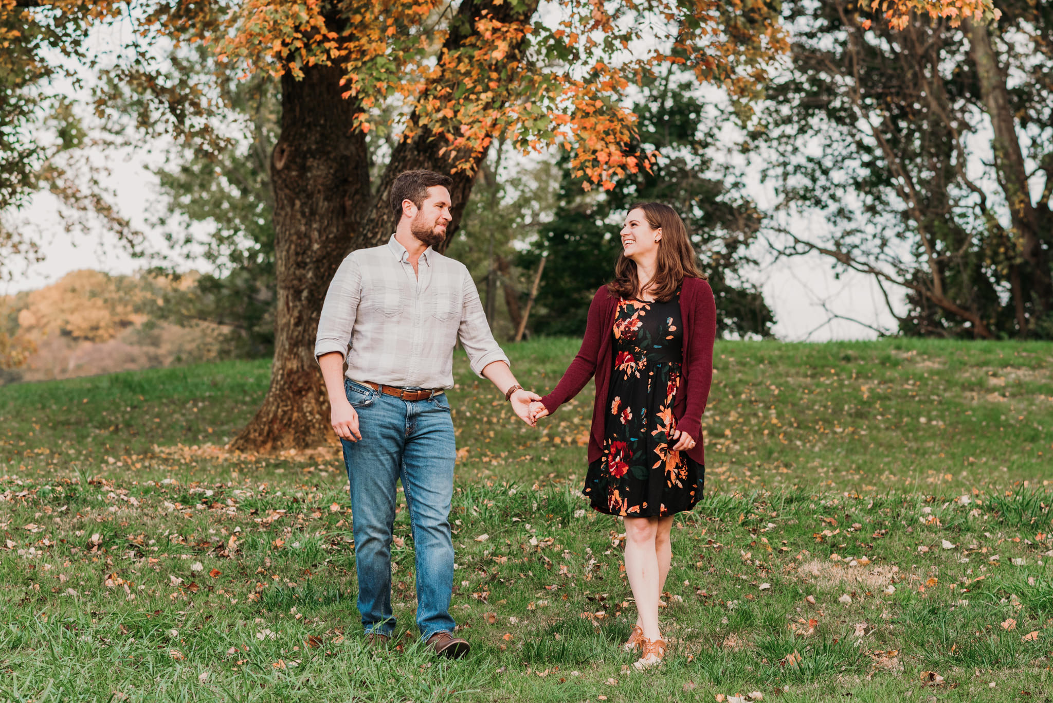 We hit it off wonderfully and planned out a day in Valley Forge National Park for their engagement session, per Julian’s request. He had taken Emily there for one of their very first dates, so it was wonderfully fitting to go celebrate this occasion together! We started exploring by the Philander Chase Knox Estate and leisurely wandered the grounds. Autumn was in full glory, the air was warm, and everywhere we went was simply beautiful. They danced, they laughed, they embraced, and we truly got to enjoy everything this stunning location had to offer. Julian suggested driving a couple miles to one specific spot along the river before we wrapped things up so we hopped in our cars and headed over. We ended the session there with a gorgeous light hike full of soft, dusky light & fantastic views of the water, and it was all seriously just so perfect!