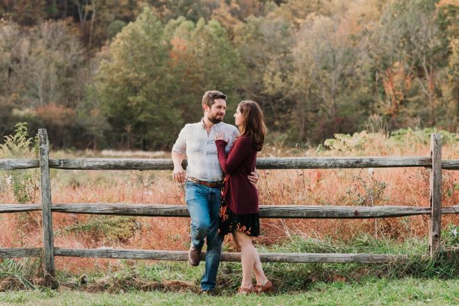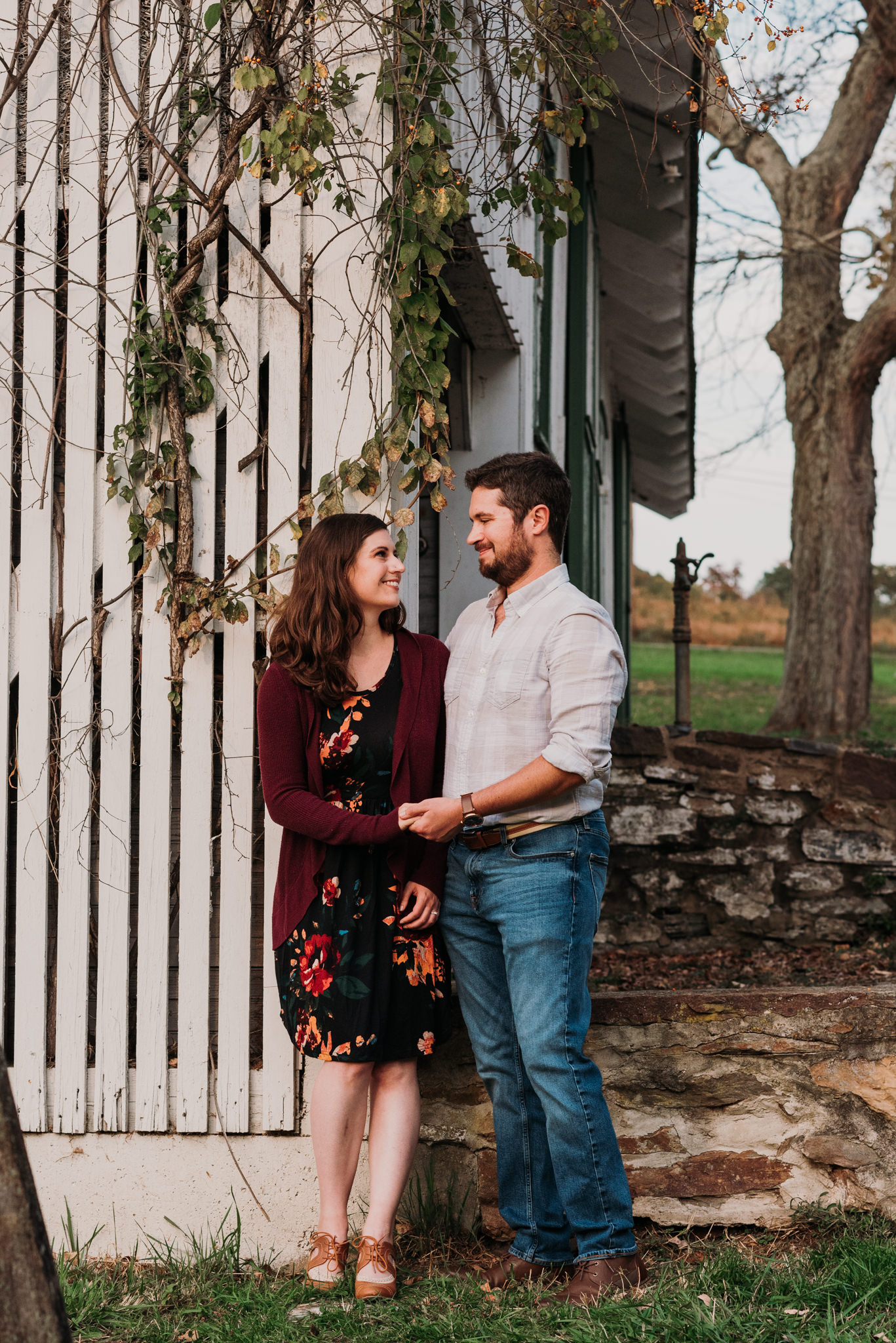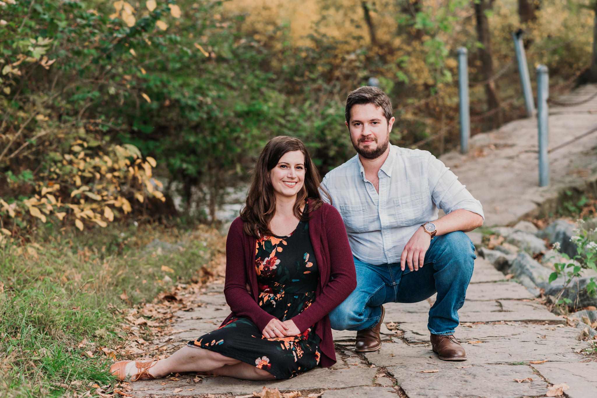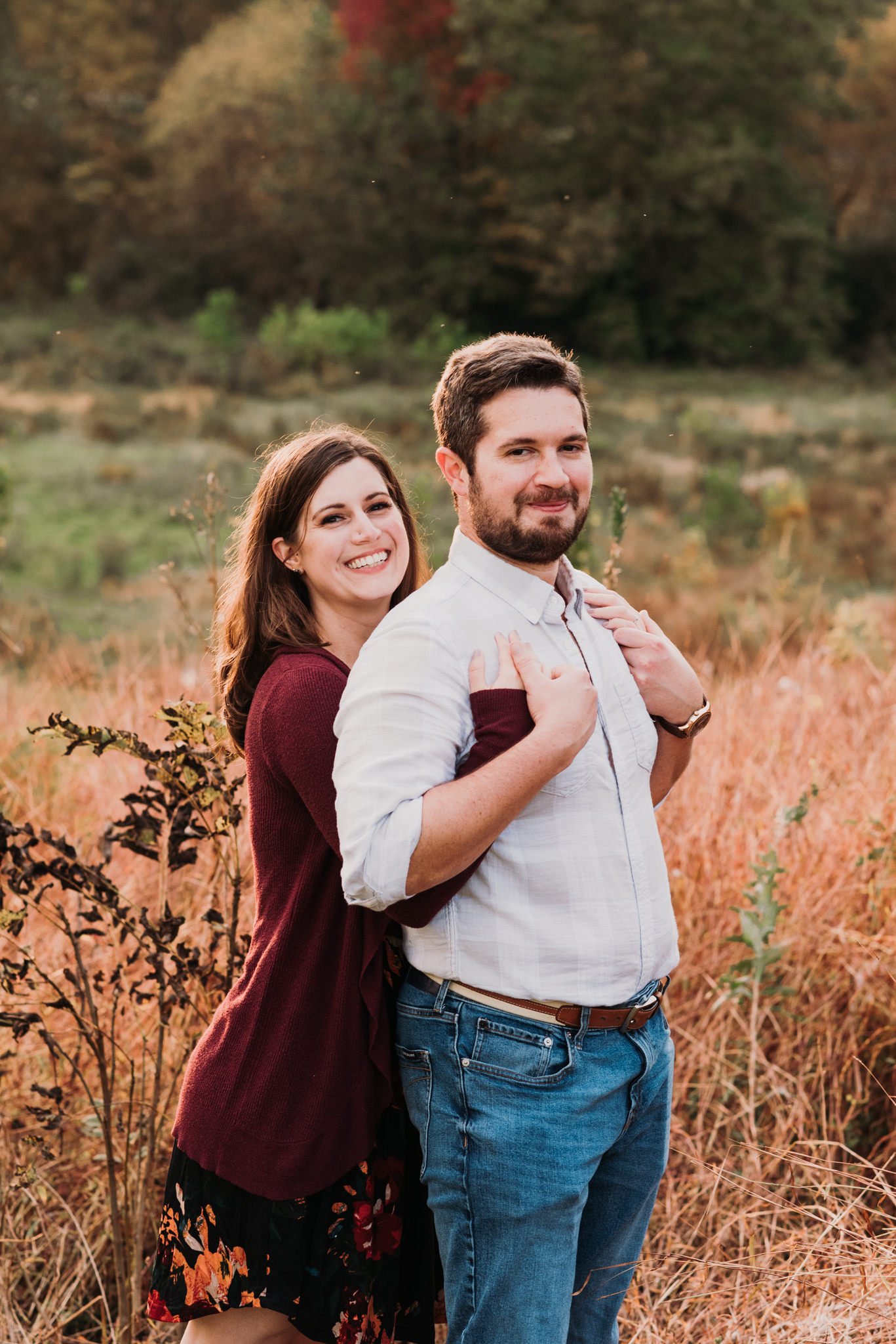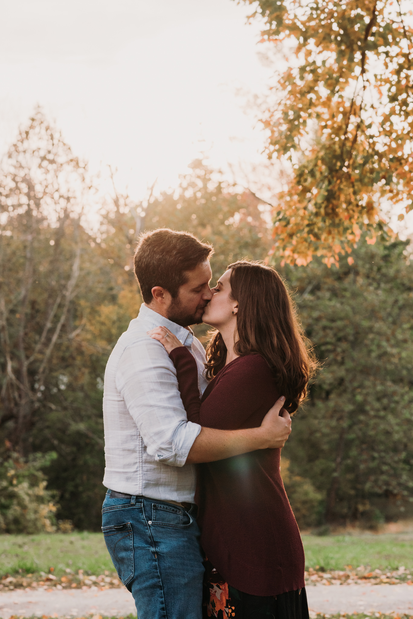 We hit it off wonderfully and planned out a day in Valley Forge National Park for their engagement session, per Julian’s request. He had taken Emily there for one of their very first dates, so it was wonderfully fitting to go celebrate this occasion together! We started exploring by the Philander Chase Knox Estate and leisurely wandered the grounds. Autumn was in full glory, the air was warm, and everywhere we went was simply beautiful. They danced, they laughed, they embraced, and we truly got to enjoy everything this stunning location had to offer. Julian suggested driving a couple miles to one specific spot along the river before we wrapped things up so we hopped in our cars and headed over. We ended the session there with a gorgeous light hike full of soft, dusky light & fantastic views of the water, and it was all seriously just so perfect!