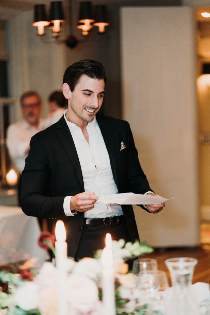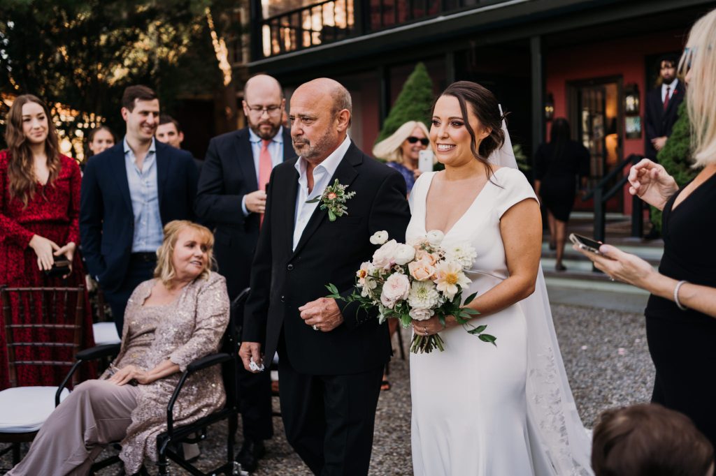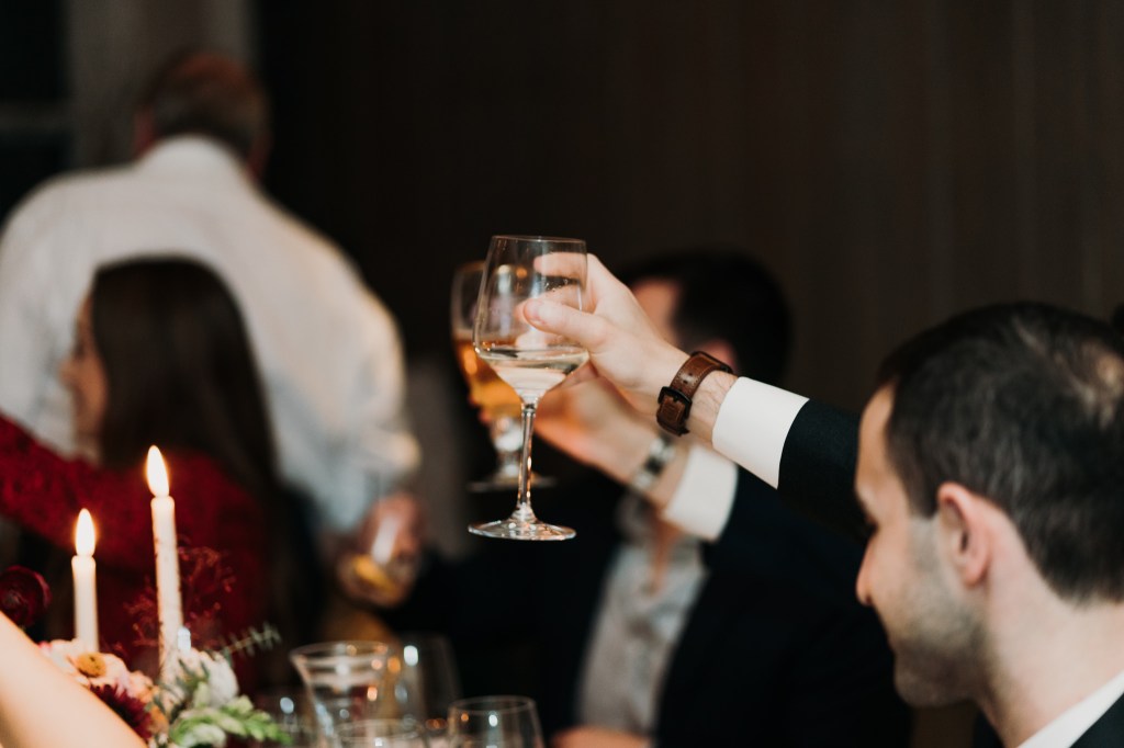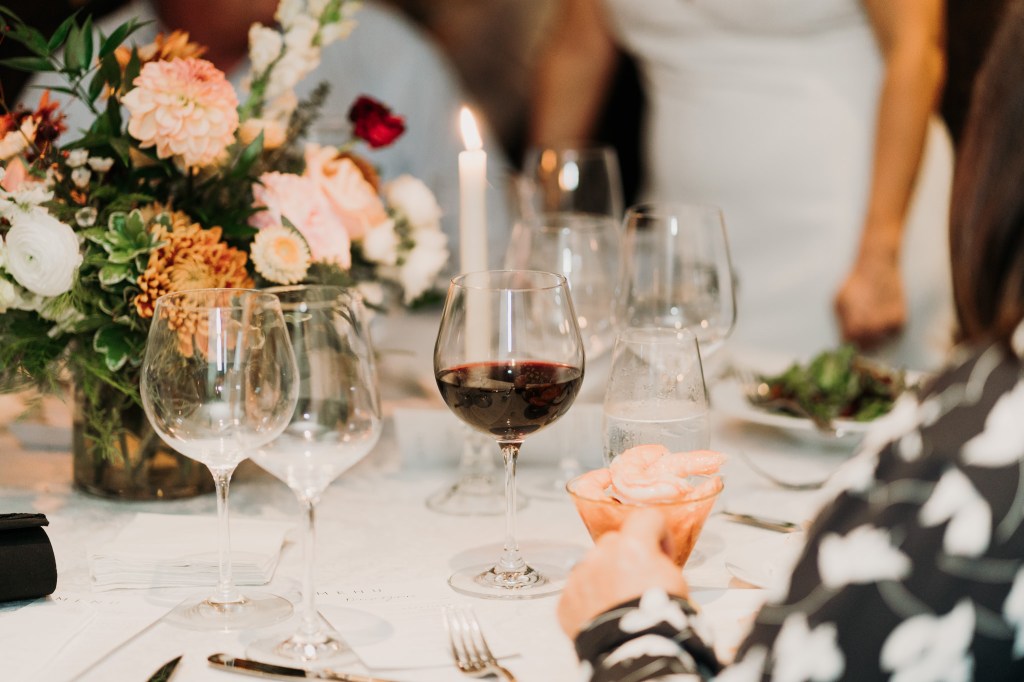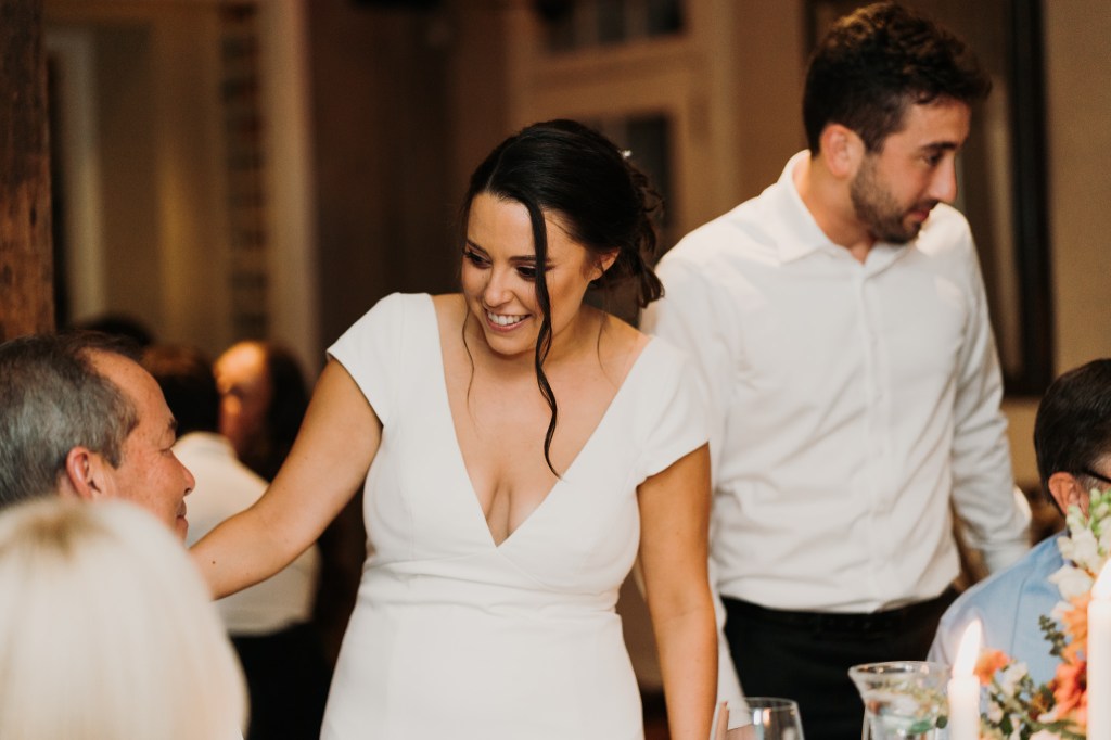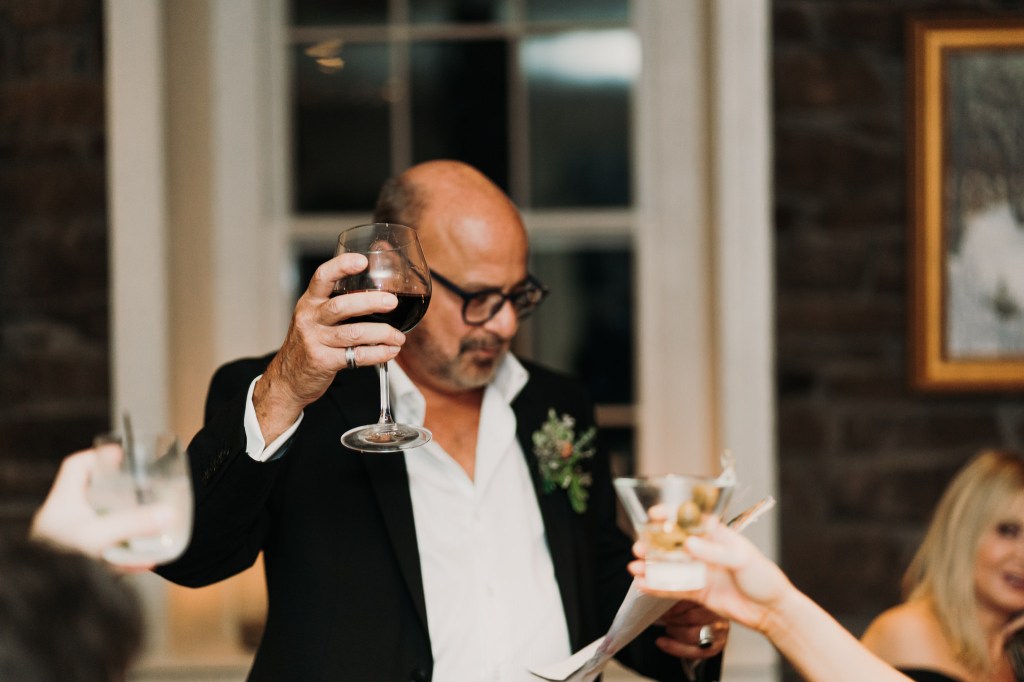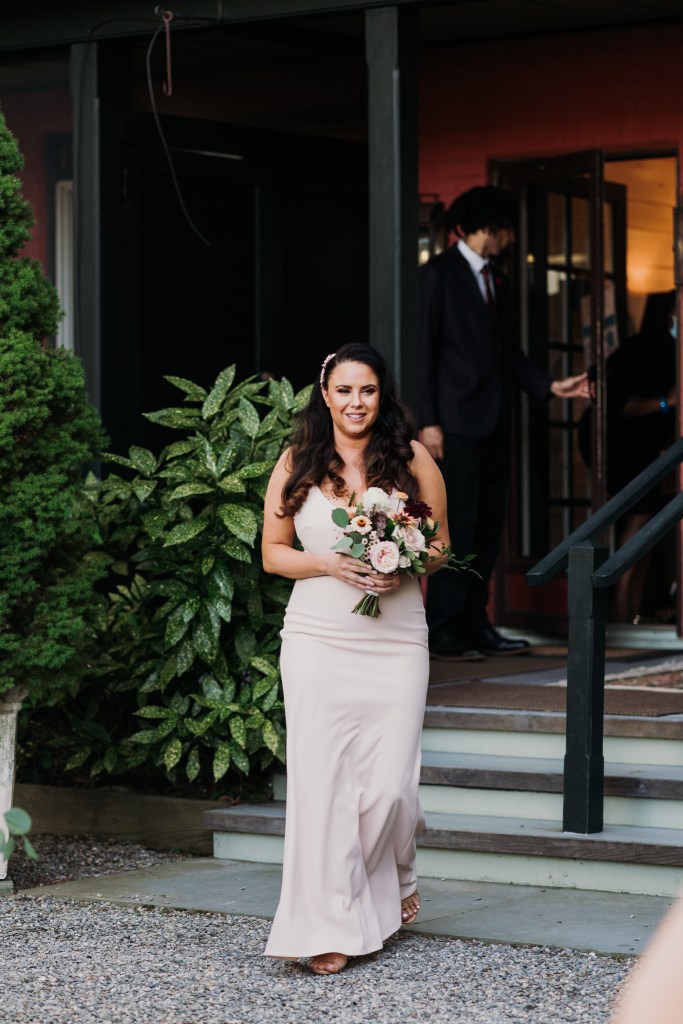 The Bridgeton House has a few different spots for ceremonies, but my favorite one is where Kelsey and Dustin chose. The views of the river and the bridge are absolutely beautiful and this particular space is always full and lush with greenery. Their ceremony was short and sweet, with self-written vows and laughs galore. My absolute favorite little string quartet played her aisle song and throughout the cocktail hour, and what bliss! After a handful of light hearted portraits and everyone finally getting a little time to kick back and really enjoy the space, we all packed up and headed out to dinner at the Golden Pheasant Inn, just up the road along the river. There we walked into a gorgeously appointed dining room, filled with florals and just the most exquisite table dressings complete with candles and all the romantic vibes. So dreamy! Wine, champagne, and cocktails flowed endlessly to celebrate. There were toasts, laughs, the happiest tears, and just so much love in that room.