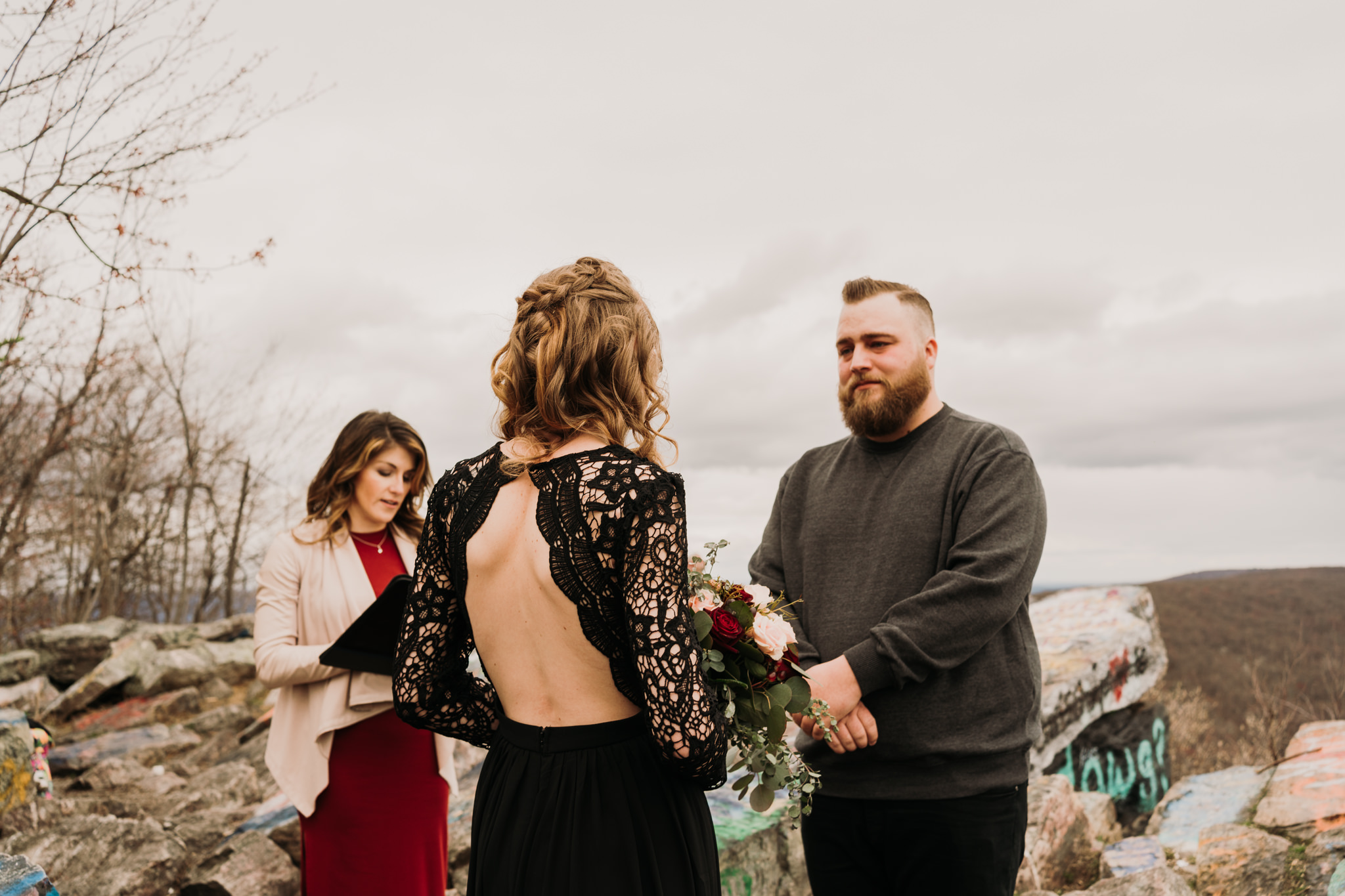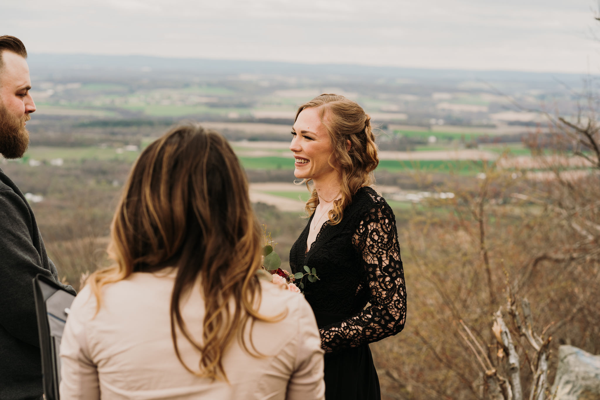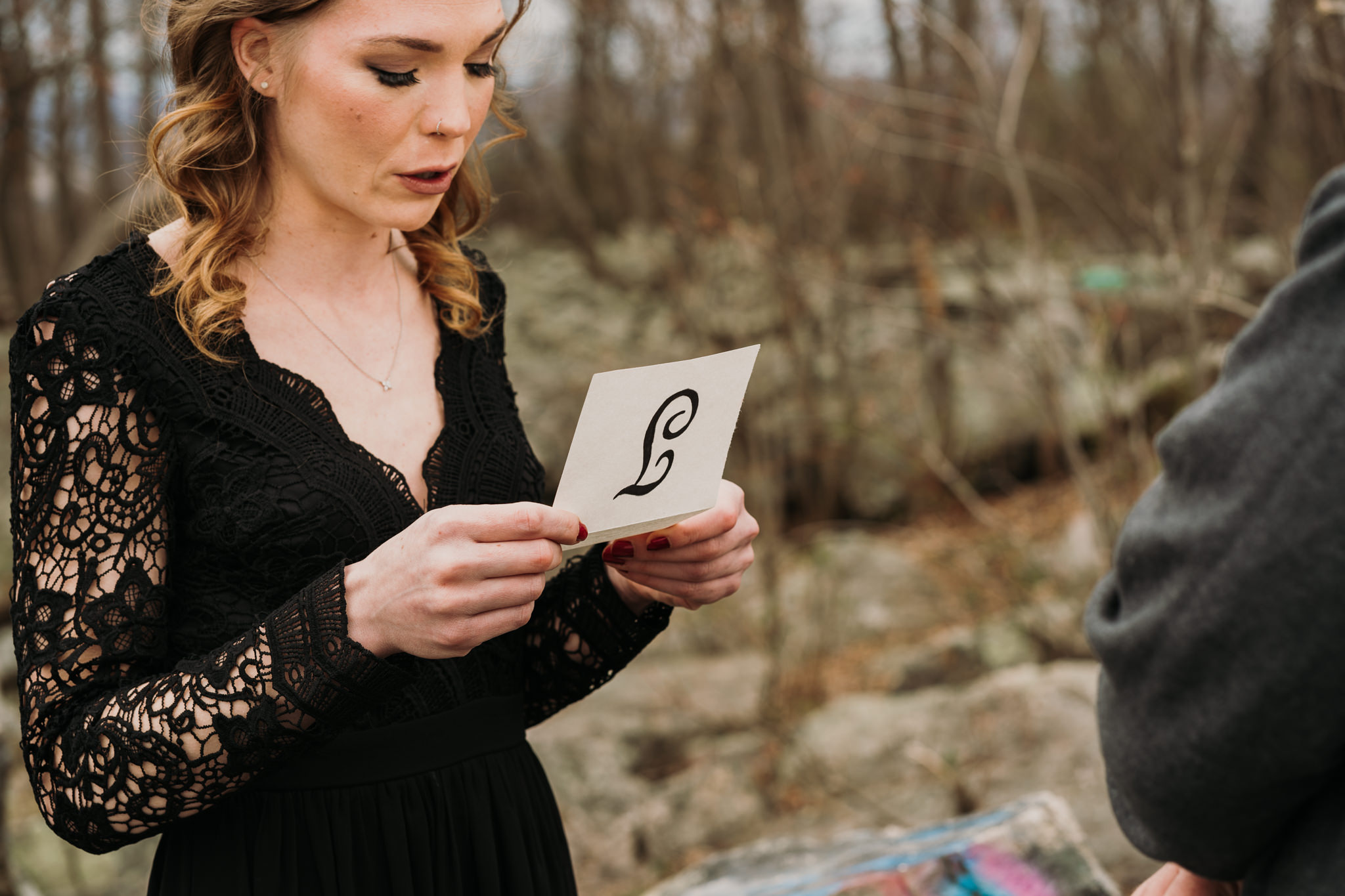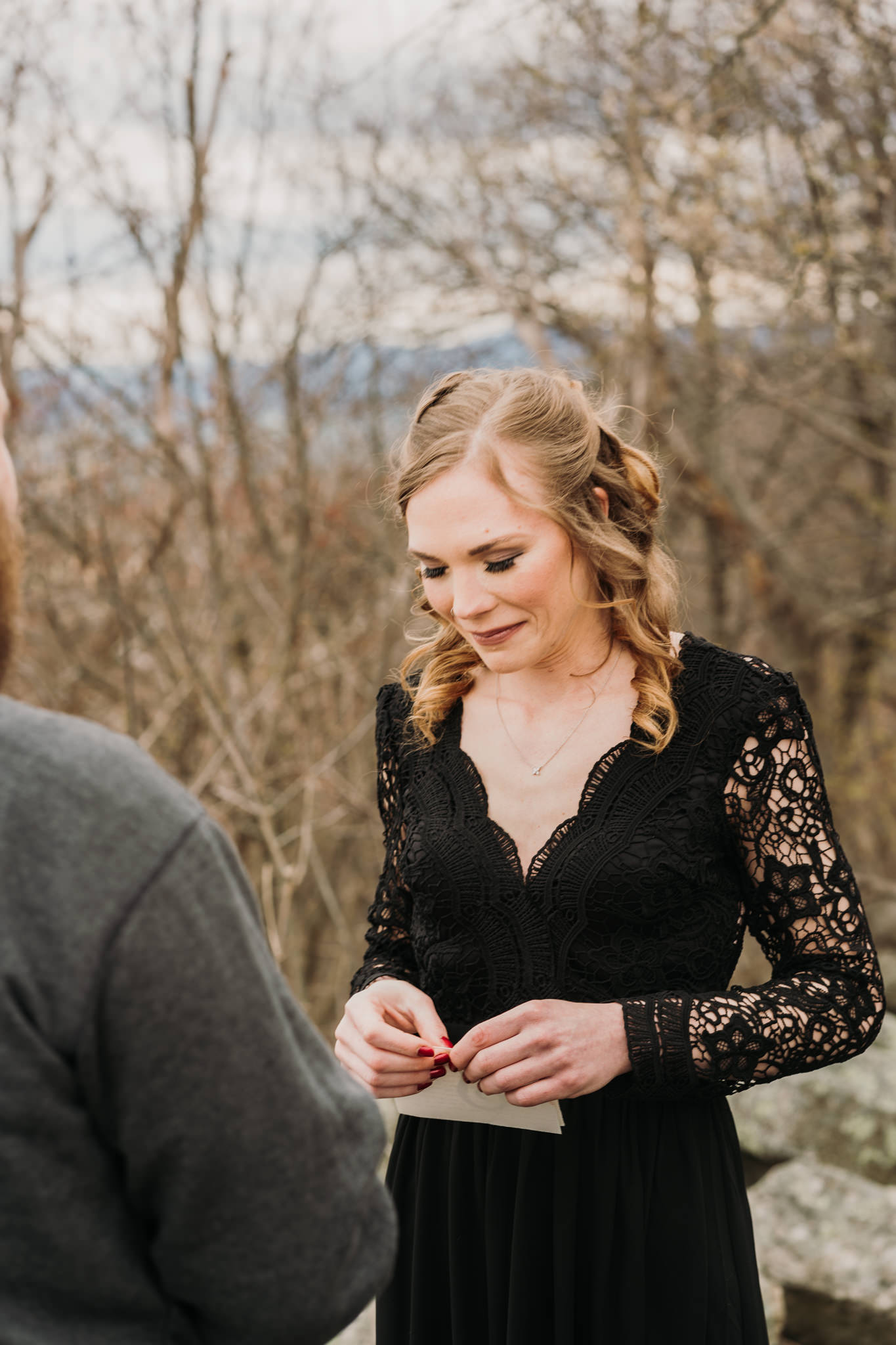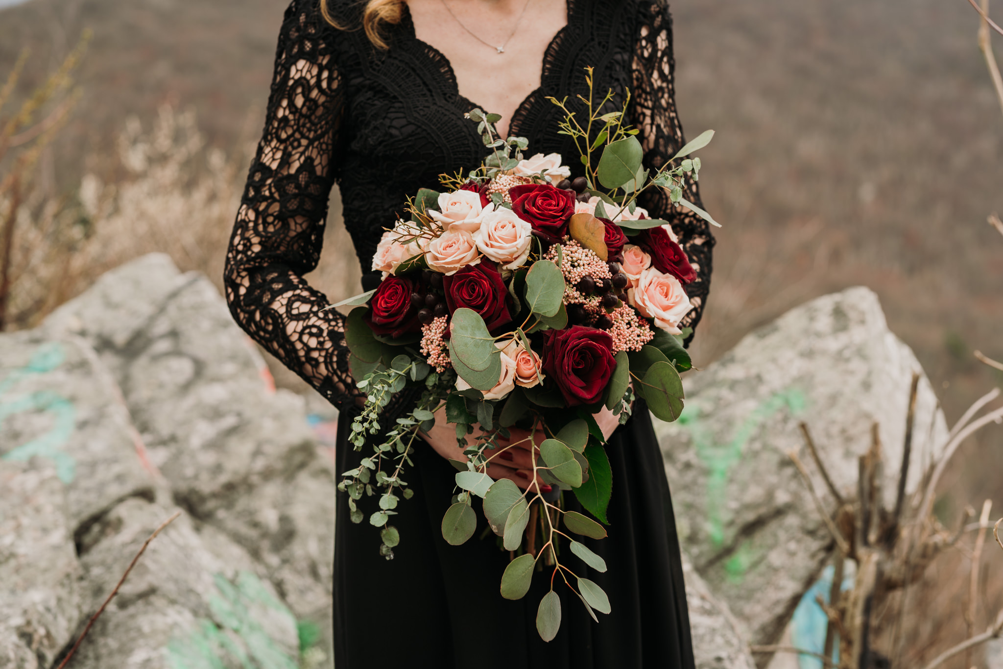 When they decided to elope, Ashley got in touch saying all she knew was that she wanted a non-traditional black dress and to be somewhere outdoors. They had zero other plans. No big ideas in mind, no particular “vision”, just a very private day together and they weren’t telling ANYONE. So, we started brainstorming! She loved hiking to Back Oven Knob years before, and the idea of the lookout being their backdrop was an immediate yes when I suggested it. We tossed dress ideas back and forth and she found one she absolutely loved in no time! I picked my very favorite colleagues and pulled together a dream team for her florals, makeup, and officiant. Ashley and Eric came over to my house that morning and we send Eric off to the barber shop while Ashley got ready here in my home, and it was the loveliest day to spend together with my almost-sister-in-law. Then, we hit the road.